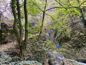 Le canyon de l’aigle est époustouflant. Nous démarrons sa visite par nous enfoncer dans le canyon en suivant la rivière. L’endroit est magnifique et nous évoluons en empruntant les cordes et échelles qui permettent de progresser dans le défilé rocheux.