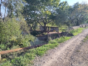 À Bolnisi, nous trouvons un premier lieu dans lequel nous pensons possible un bivouac. Pas complètement convaincus, mais ça semble possible. Estelle pense aux serpents en arrivant ici.