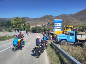 Une pause repas au bord d’un chemin qui part, la police des frontières qui vient vérifier que nous n’allons pas escalader la montagne à travers les bois avec nos vélos pour repasser en Arménie et c’est reparti pour la dégringolade. Le temps est radieux, nous sommes enivrés par cet environnement paisible de forêts et de sommets.