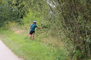 Le lendemain nous roulerons 46kms et serons obligés de déjeuner sous le tarp. La pluie est bien présente cet été. Les enfants trouvent le temps long, alors, pendant que l’on roule, on invente des histoires, on joue au train, à la sorcière… Tout ce qui leur permet de vivre ce temps autrement est bienvenu et permet de continuer à avancer dans la bonne humeur.