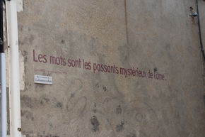 Pour son café qui nous accueille, et ses phrases écrites sur les murs qui rendent honneur aux mots, à l’écrit, aux voyages littéraires en somme. Se promener et cueillir au gré des rues ces petites phrases est enchanteur et met de la poésie dans cette pause sur le chemin.